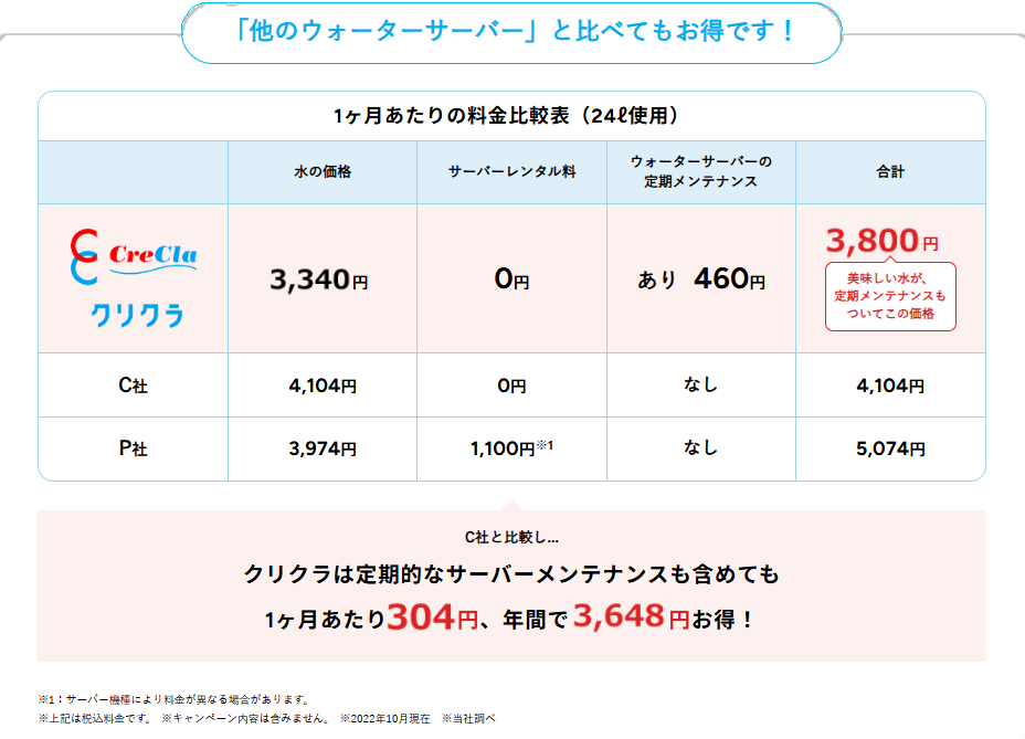 - 3ヶ月単位でボトルの注文が6本未満の場合は、ウォーターサーバーのレンタル料を月額1,100円(税込)としてご請求します。